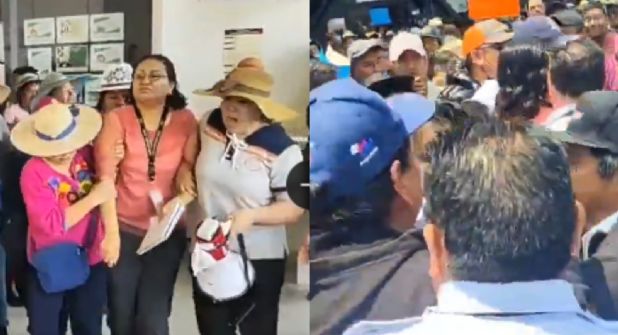 La protesta de los campesinos ante el SAT se tornó violenta en un momento dado, pues ingresaron a las oficinas y ‘secuestraron’ a una funcionaria pública; esta fue identificada como la subadministradora de la regidora.