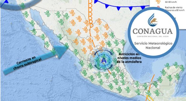 Además del intenso calor y las lluvias, el Servicio Meteorológico Nacional prevé rachas de viento de hasta 50 kilómetros por hora. Las temperaturas congelantes bajarán hasta los -5 grados durante la madrugada en zonas montañosas de Baja California, Sonora, Chihuahua y Durango.