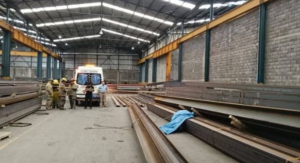 Un hombre murió esta mañana al caerle 3 vigas de acero de 8 toneladas que buscaba maniobrar en la empresa Aceromex Linda Vista, en Guadalupe, Nuevo León.