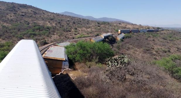 Un tren que transportaba automóviles descarriló en los límites del municipio de Tecozautla, Hidalgo y Tequisquiapan, Querétaro, frente a la pista El Pitol.