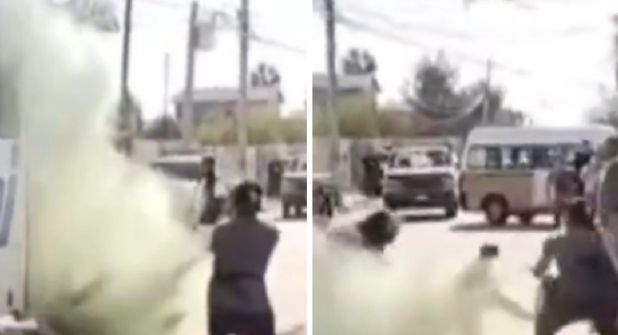 Después, otro hombre se acerca con un extinguidor y lo activa en el cuerpo del extranjero, siendo arrojado hacia la calle. Ahí, en plena calle, siguen atacándolo los dos sujetos con el cuchillo y con el extintor. Aunque Aleksander "gatea", en un intento por alejarse y levantarse, los hombres lo acorralan.