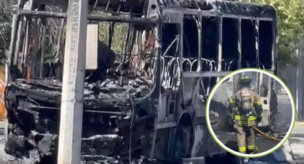 La unidad pertenece a la ruta 310 del transporte público de la ciudad y quedó como pérdida total al consumirse por las llamas.