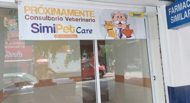 Todo comenzó con una publicación viral en la red social X, donde se observa un local con la imagen del famoso Dr. Simi sosteniendo un perro y un gato, acompañado del anuncio: “Próximamente consultorio veterinario Simi Pet Care”.