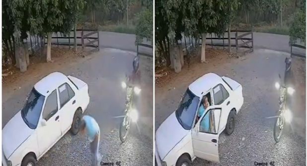 El hombre, al que se no le puede apreciar el rostro por traer casco, lo interceptó llegando a su casa, e incluso se puede ver a su perrito recibiéndolo feliz, antes de la trágica escena que indignó a los cibernatuas.