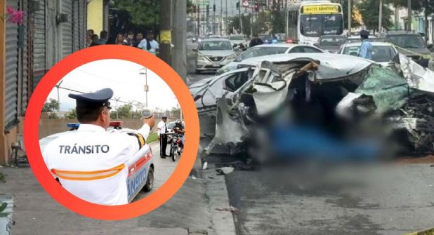 El accidente ocurrió en los carriles de sur a norte, específicamente en el cruce con la calle Jacinto, donde un automóvil quedó prácticamente partido a la mitad tras colisionar de costado contra un poste de concreto.