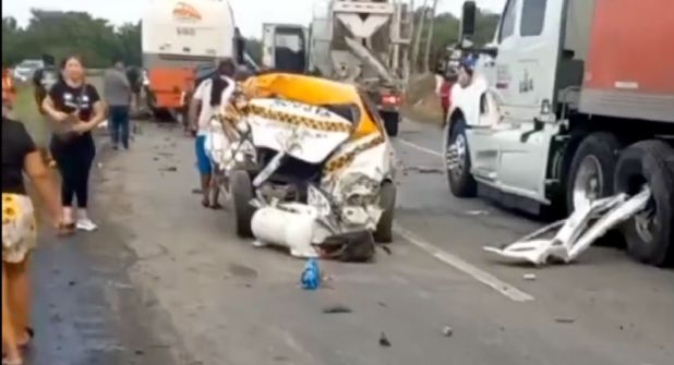 Los videos difundidos en redes sociales muestran varios vehículos de carga que se impactaron contra automoviles particulares y camionetas, los cuales quedaron destrozados.