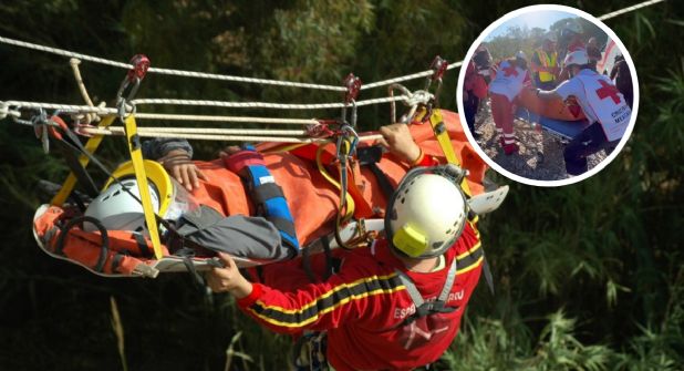 En cuestión de minutos varios socorristas desplegaron un dispositivo de rescate que incluyó camillas, cuerdas y poleas.