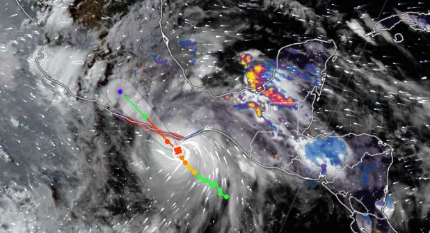 El fenómeno se localiza actualmente a menos de 100 kilómetros al suroeste de Puerto Ángel, en Oaxaca, y a unos 260 kilómetros de Punta Maldonado, en Guerrero. Se mueve a una velocidad de 15 km/h, lo que deja poco margen de maniobra a las comunidades más vulnerables.