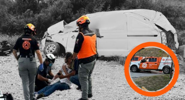 Un vehículo con dos pasajeros que viajaban con rumbo de Saltillo para llegar a su trabajo sufrió una volcadura cerca de un vado en García.