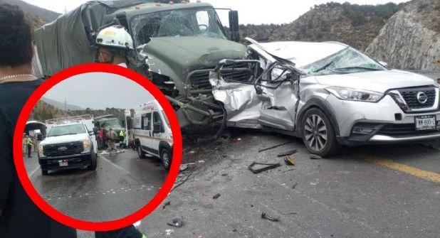 El percance tuvo lugar al nortel de kilómetro 230 de la Carretera Federal 57, en el tramo Saltillo–Los Chorros, saliendo del túnel. Autoridades informaron que un camión militar tuvo una falla mecánica por lo que el conductor perdió el control del vehículo.