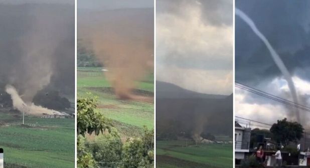 La tarde de este sábado 7 de junio, pobladores del municipio de Salvador Escalante, Michoacán, fueron sorprendidos por la formación de un embudo nuboso, similar a un tornado, el cual fue confirmado por Protección Civil estatal y generó temor y asombro entre los habitantes.