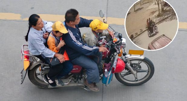 La motocicleta era conducida por el padre de familia y en la parte trasera iba la madre, en medio de los dos adultos iba el pequeño, pero ninguno usaba algún tipo de protección.