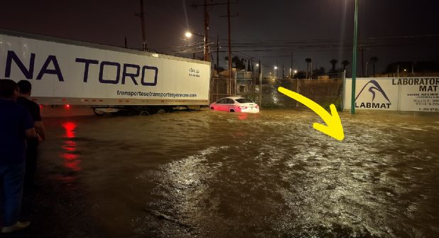 En medio de una noche marcada por la lluvia intensa y calles completamente inundadas en Matehuala, San Luis Potosí, un acto de valentía y humanidad destacó entre el caos. Un trailero, cuya identidad aún no ha sido revelada, acercó su pesada unidad para rescatar a una familia atrapada por la corriente en una zona baja.