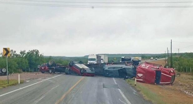 El incidente de un tráiler cargado de camionetas habría sido antes del tramo conocido como "La Bamba". Los autos que transportaba la pesada unidad también quedaron volcados sobre el pavimento.