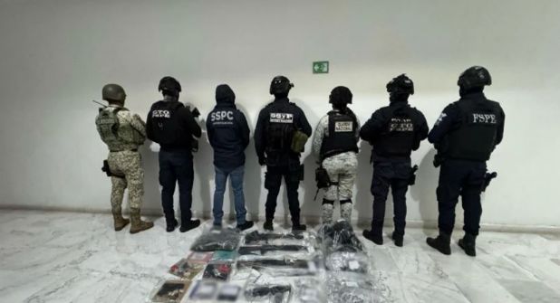 En Toluca, en una empresa de mensajería dentro del aeropuerto, elementos de GN y Fiscalía General de la República (FGR), al realizar una inspección a una caja de madera con destino a Malasia, aseguraron 34 kilos de metanfetamina.