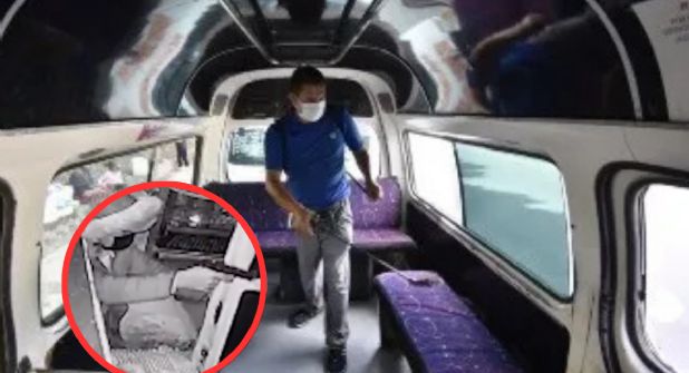 De acuerdo con imágenes difundidas en redes sociales, el asaltante le hizo la parada al chofer haciéndose pasar como un usuario más, por lo que el conductor accedió a detener su marcha y abrió la puerta de la camioneta.