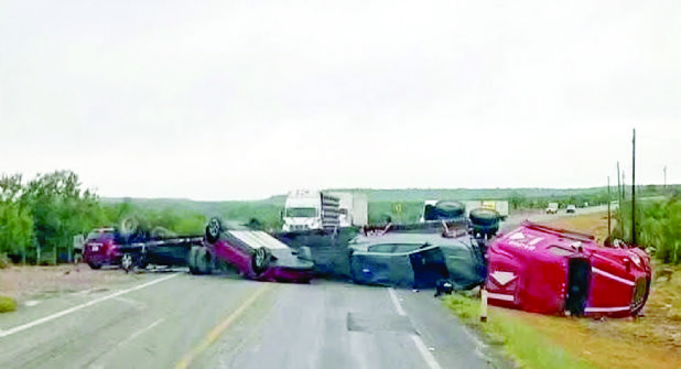 El cierre de la Carretera Libre hacia Nuevo Laredo duró seis horas. La imagen de un tráiler con dos vehículos tirados sobre el ancho de la carretera, circuló por redes sociales para advertir a los automovilistas.