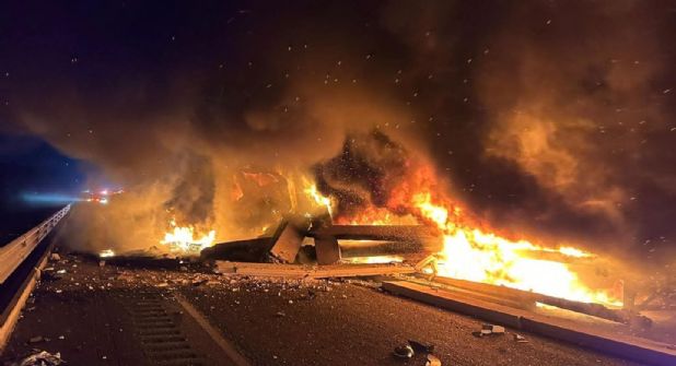 Según los primeros informes, las unidades involucradas eran tráileres tipo doble remolque: uno transportaba hidrocarburos en un contenedor, y el otro llevaba vigas de concreto.