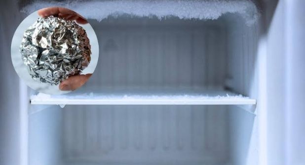 1. Forra las paredes interiores del congelador con papel de aluminio.