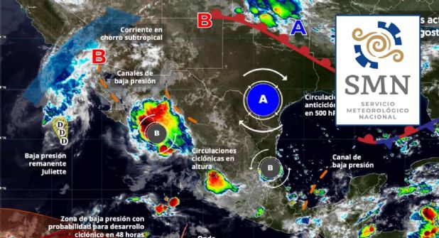 A la par, el SMN reporta la presencia de fuertes lluvias, con una potencia de entre 75 a 150 milímetros (mm). En este punto, las entidades federativas afectadas serán Veracruz, Guerrero, Oaxaca, Chiapas y Tabasco, aunque puntualmente únicamente se pronostican en ciertas regiones de los territorios estatales.