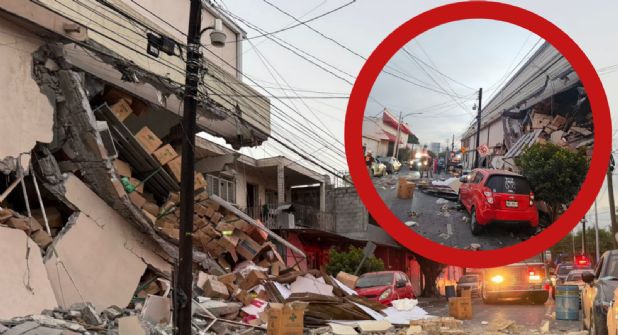 En el sitio de los hechos, se registró la caída de la pared principal, el desprendimiento del portón y la cortina principal. Además, al exterior se observaron cajas con insumos médicos.