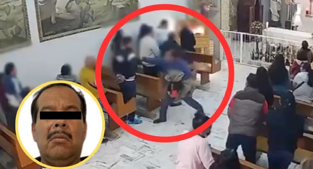 En las cámaras se aprecia que más de una treintena de feligreses se encontraban atentos de la ceremonia cuando un hombre, identificado como Marco Antonio, se levanta abruptamente de un asiento cercano y se dirige hacia el joven, que estaba unas bancas más atrás.