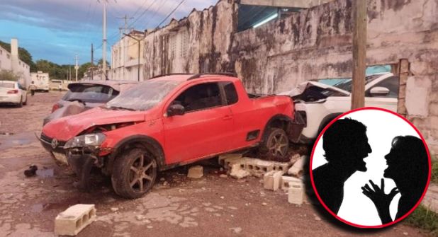 Un episodio de celos terminó en un accidente múltiple en el barrio de Santa Lucía, en la capital campechana, luego de que una mujer, presuntamente al descubrir a su esposo con otra mujer, chocara dos vehículos y derribara una barda.