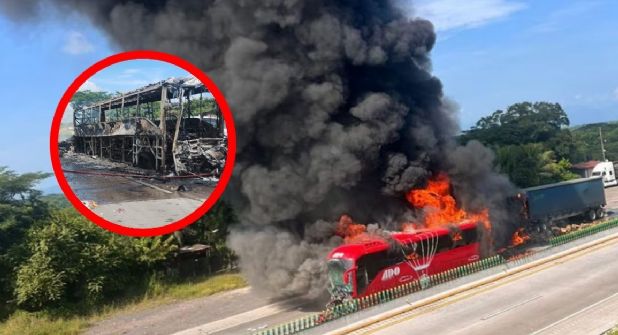 En las imágenes que comenzaron a circular en redes sociales, se aprecia que el autobús detiene la marcha debido al intenso tráfico de la autopista, para momentos después ser impactado por un tráiler que no pudo frenar a tiempo, generando un accidente que terminó con incendio.