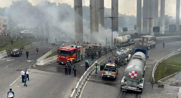 Una pipa con cerca de 50 mil litros de gas licuado de petróleo (Gas LP), se volcó este miércoles bajo el puente de La Concordia, en la Calzada Ignacio Zaragoza, alcaldía Iztapalapa, lo que causó una explosión que dejó 6 muertos, 70 heridos, y varios vehículos calcinados, informó la Secretaría de Seguridad de la Ciudad de México.