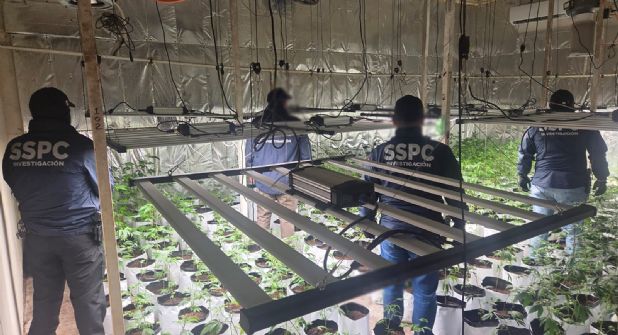 - En Iztacalco: un invernadero con 1,153 plantas de marihuana, dos bolsas con marihuana, una bolsa con polvo amarillo, y una báscula digital.