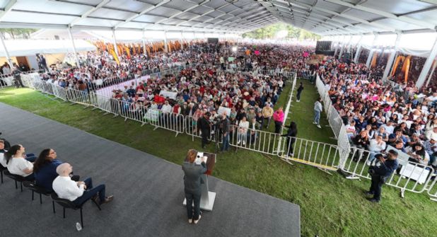 Como parte de su gira nacional de rendición de cuentas, informó que, en el Estado de México, —entidad número 16 que visita— 3 millones 800 mil personas reciben algún Programa para el Bienestar, de manera directa, sin intermediarios y sin condicionamientos políticos como se hacía en los gobiernos neoliberales.
