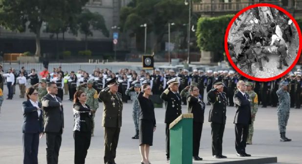 Durante la ceremonia, la banda de guerra de la Sedena entonó el toque “Silencio”, rindiendo homenaje a las miles de personas que perdieron la vida en ambos terremotos, así como a los rescatistas y voluntarios que participaron en las labores de auxilio.