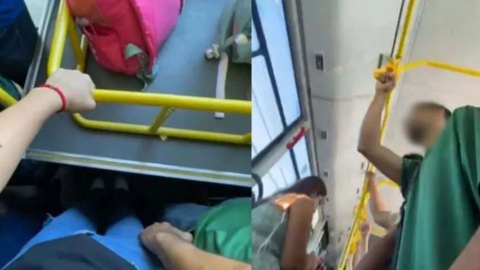 La afectada, identificada como Johana Zapata, compartió en Facebook un video donde se observa a un hombre vestido con pantalón de mezclilla y playera verde que, en al menos dos ocasiones, estira la mano para rozar la pierna de la joven.