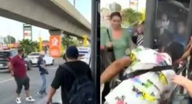 Según la grabación, todo comenzó cuando la unidad presentó una falla mecánica y el conductor pidió a los usuarios descender. Sin embargo, uno de los pasajeros, vestido con una camisa blanca con vivos de colores, se enfrascó en una fuerte discusión con el chofer, quien portaba una playera guinda.