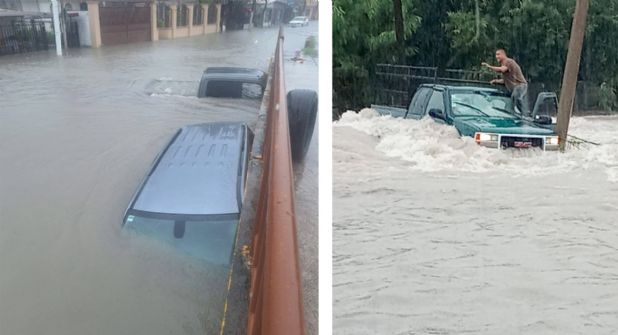 Uno de los episodios más alarmantes se registró en la colonia Vista Hermosa, donde una camioneta y un automóvil quedaron atrapados en medio de un torrente.