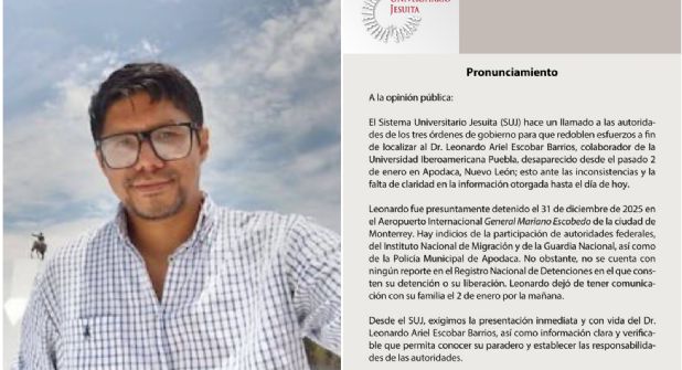 La Universidad Iberoamericana se ha pronunciado, exigiendo que las autoridades que redoblen esfuerzos para hallar con vida al docente