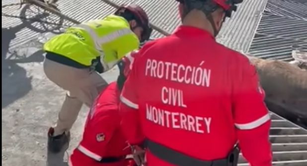 Cabe hacer mención que al lugar llegaron elementos de Protección Civil de Monterrey, en coordinación con Protección Civil de Nuevo León, para realizar las maniobras del rescate del animal.