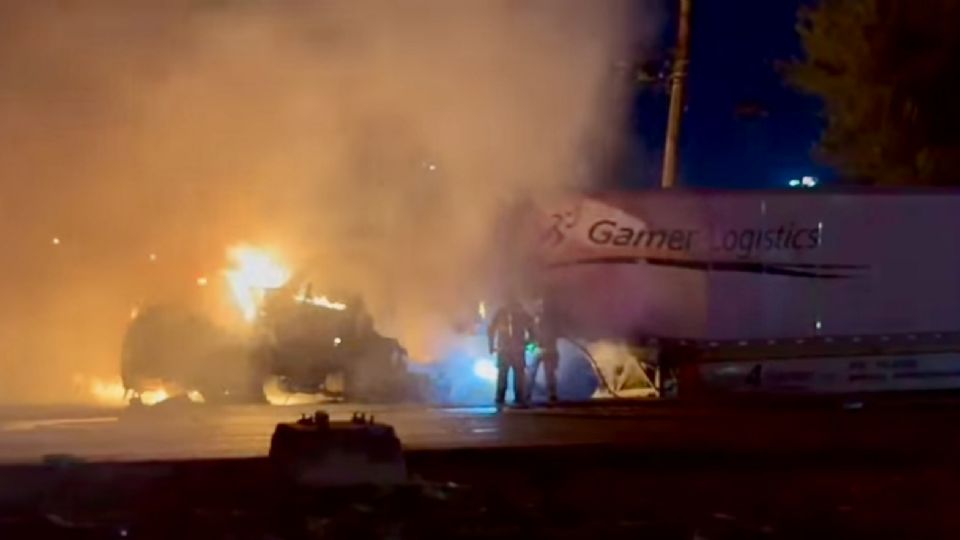 La movilización de cuerpos de emergencia se registró la noche del viernes en Apodaca, Nuevo León, luego de que un tractocamión de carga pesada se incendiara mientras circulaba por la Carretera a Laredo, incidente que dejó únicamente daños materiales.