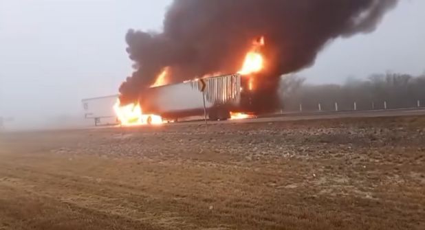 Una de las pesadas unidades estaba estacionada sobre el acotamiento, cuando llegó otra y se impactó por detrás, en la caja del vehículo, comenzando a incendiarse.