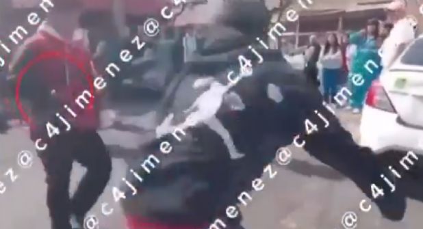 En el clip, que tiene una duración aproximada de 29 segundos, se aprecia cómo dos jóvenes más (que no portaban uniforme escolar) se suman a la agresión con patadas y golpes, segundos después, uno de ellos extrae una pistola, provocando que la pelea se detenga de inmediato y generando escenas de pánico entre quienes se encontraban en el lugar.