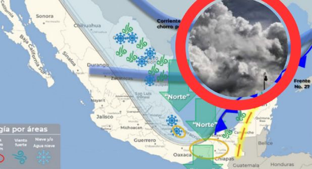 El sistema frontal 27 llega al Noroeste de México, el cual viene impulsado por una nueva masa de aire, en donde ambos generarán gran nubosidad sobre está área, además de la presencia de bajas temperaturas vespertinas y nocturnas, así como la presencia de lluvias y chubascos aislados en el Península de Baja California.