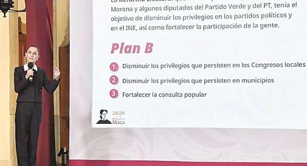 La presidenta, Claudia Sheinbaum Pardo, anunció que el próximo 16 de marzo enviará al Congreso de la Unión un Plan B de reforma electoral que busca reducir privilegios en congresos locales y ayuntamientos, además de fortalecer los mecanismos de consulta popular.