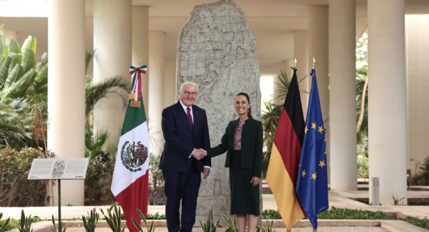 La Presidenta de México, Claudia Sheinbaum Pardo, recibió en el Museo Maya de Cancún, Quintana Roo, al Presidente de la República Federal de Alemania, Frank-Walter Steinmeier, con quien sostendrá una reunión. Como parte de la Ceremonia Oficial de Bienvenida, se entonaron los himnos nacionales de México y Alemania. Posterior a ello, se realizó la toma de la fotografía oficial del encuentro.