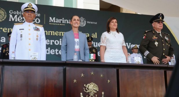 En el 112 Aniversario de la defensa del Puerto de Veracruz, la Presidenta Claudia Sheinbaum Pardo encabezó la *Ceremonia de Jura de Bandera* de *419* cadetes de Primer Año de la Heroica Escuela Naval Militar y del Centro de Estudios Navales en Ciencias de la Salud, a quienes recordó que el país necesita marinos valientes que entiendan que el amor al pueblo y a la patria siempre vencerá al entreguismo y a la ambición, ya que México es una nación libre, independiente y soberana.