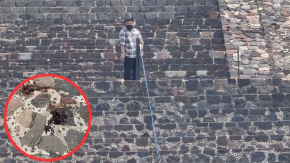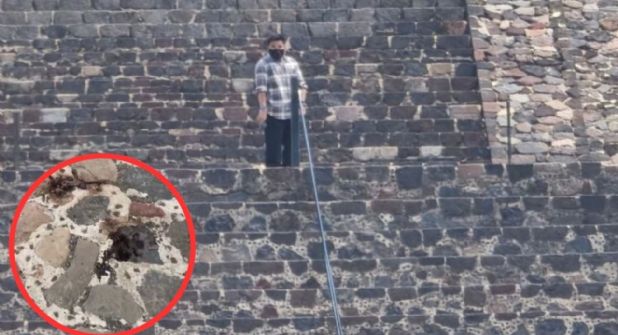 Turistas documentan manchas de sangre en la pirámide de la Luna