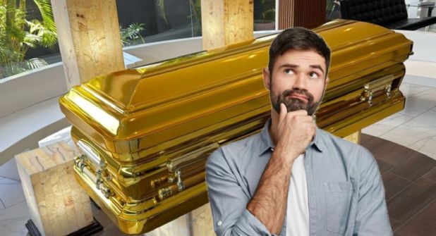 "Regal Gold", nombre oficial del modelo del féretro, no se trata de un ataúd de oro, sino de acero pulido color dorado, con un acabado que se considera un objeto de lujo.