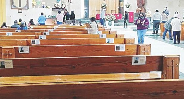 A Ninfa le tocó escuchar la misa desde las afueras de la iglesia, pues a pesar de las restricciones las familias se congregaron para escuchar con atención la eucaristía.