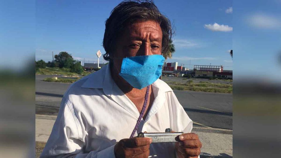 De la albañilería pasó a ser velador en un estacionamiento al sur de la ciudad. Desde hace ocho años pasa gran parte del día y tarde en la lucha por las propinas, y junto con su filarmónica al son de ‘Las Caderitas’, melodía que toca con emoción y entusiasmo, gana cada peso que recibe durante el día. “Que le vaya bien”, le dice al que se iba del estacionamiento, y aunque sin un peso retribuido por el ciudadano, continúa la melodía con su instrumento musical.