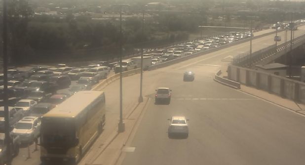De acuerdo con las imágenes de las cámaras, es el Puente Juárez-Lincoln el que presenta un lleno sobre su plancha con destino a Laredo. Mientras que para cruzar a Nuevo Laredo está vacío.