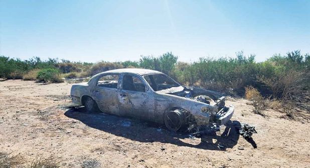 Militares adscritos a la seguridad de Nuevo Laredo son señalados de haber incendiado un vehículo con reporte de robo en una brecha ubicada a la altura del kilómetro 13 de la Carretera Nacional.